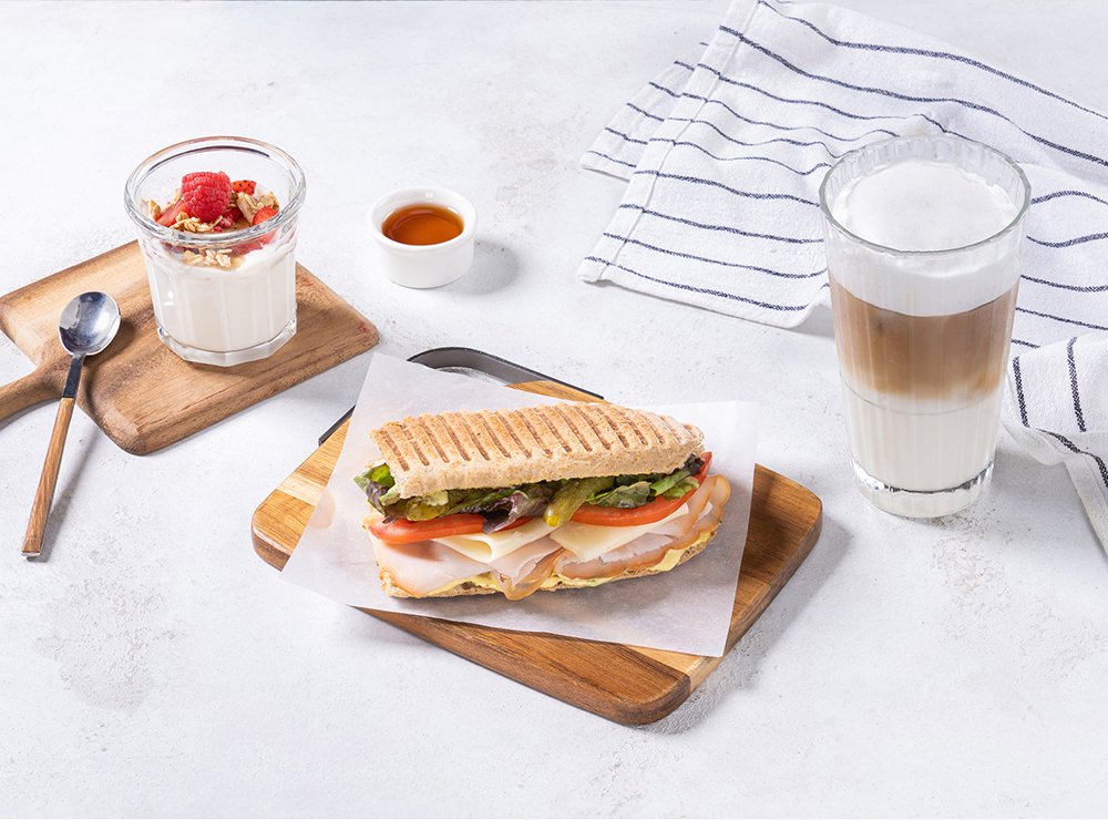 half turkey and cheese, half morning sunshine, and your choice of coffee